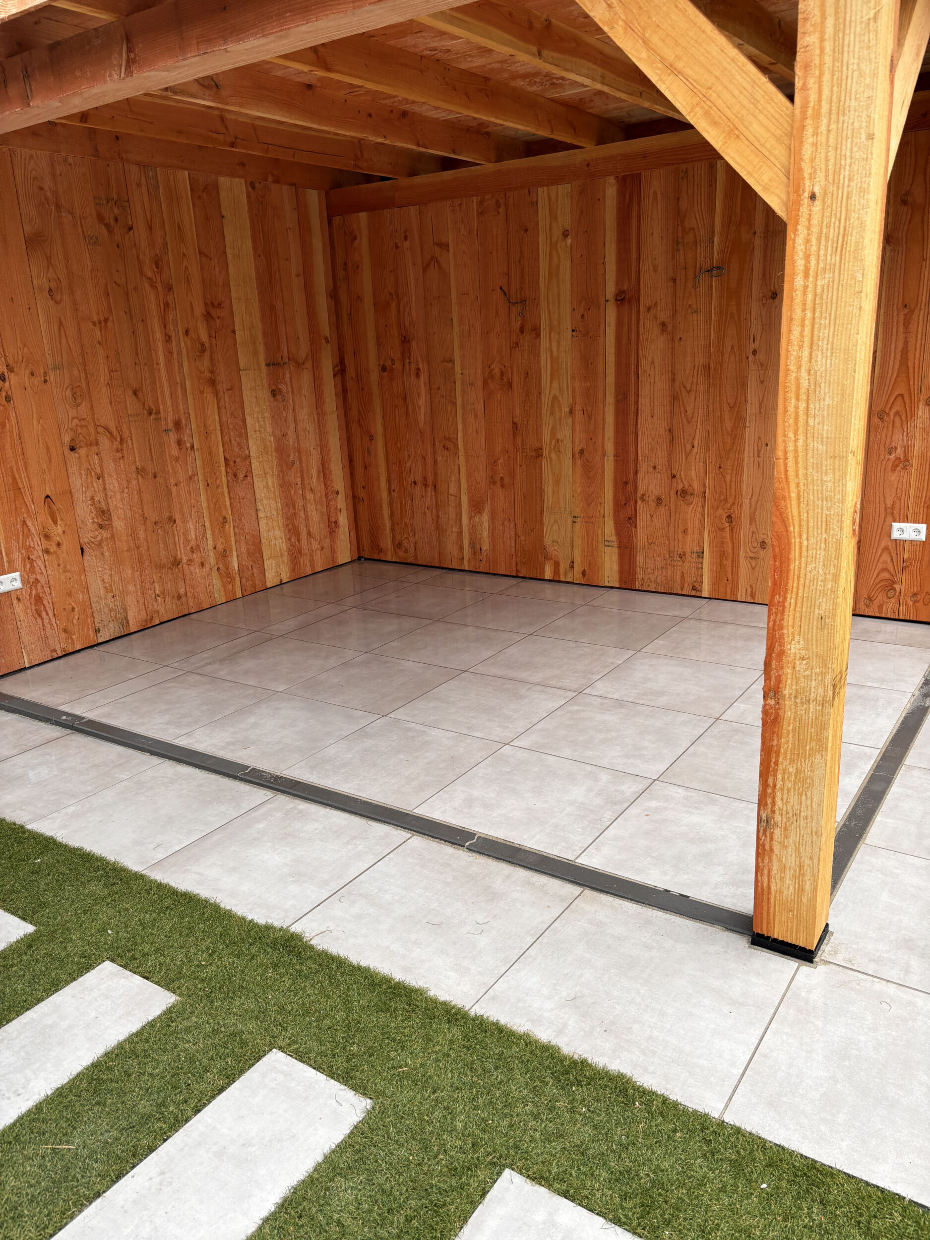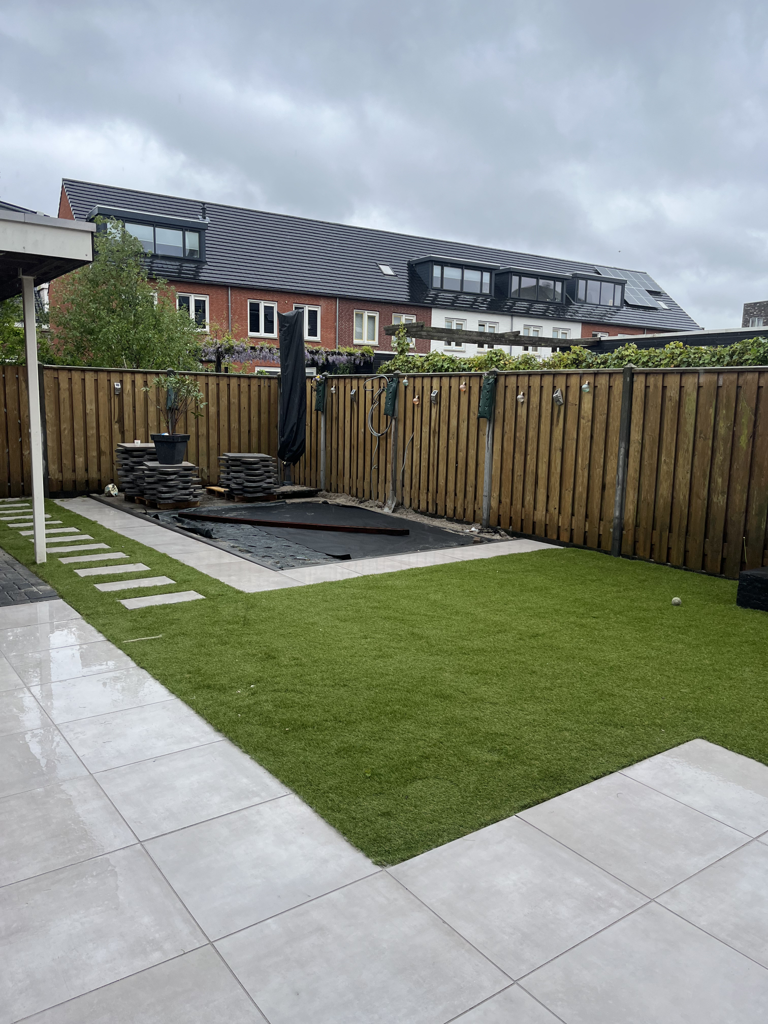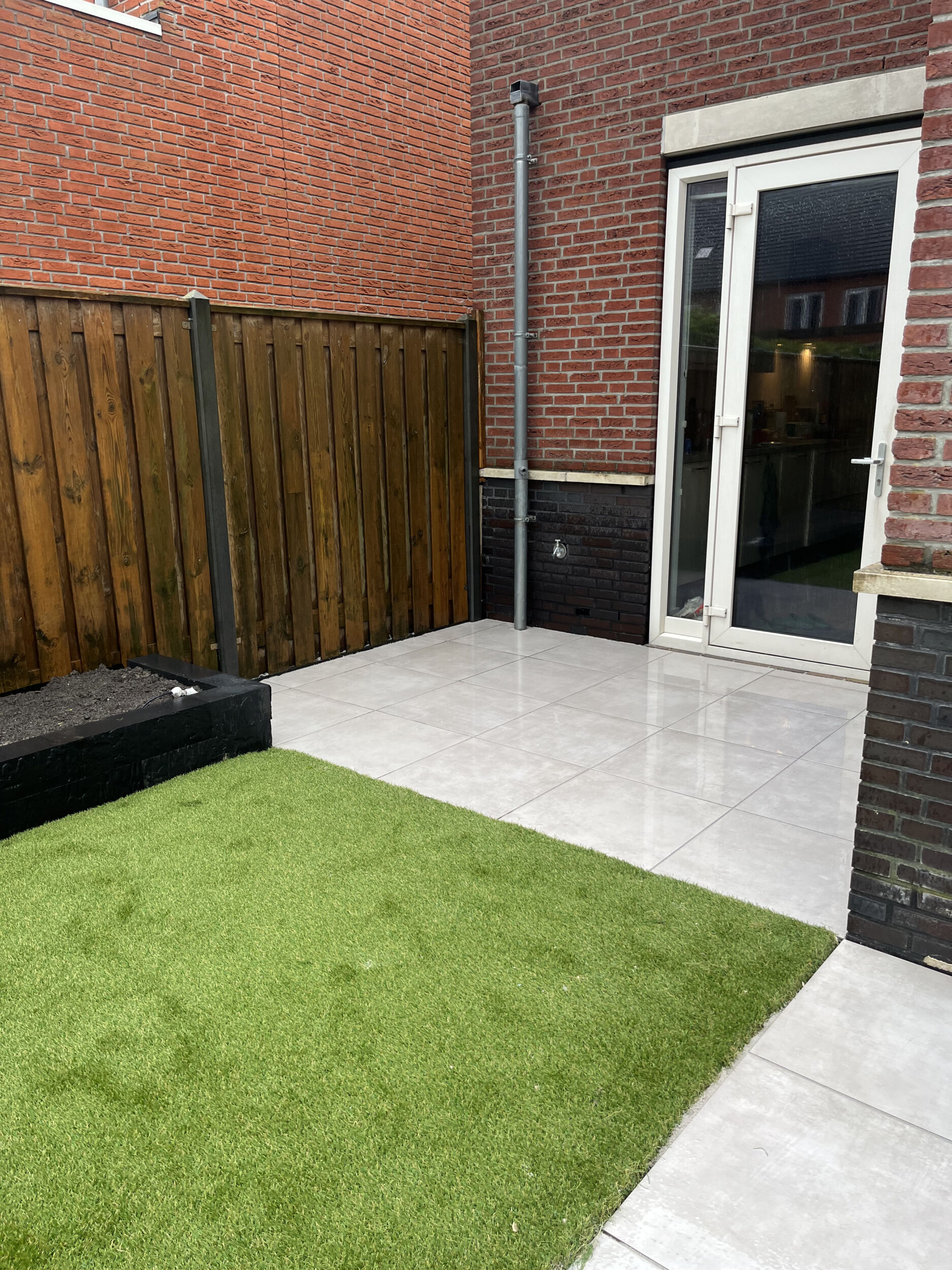 Deze particuliere tuin in Maassluis laat zien dat hergebruik perfect samengaat met een moderne uitstraling. Door oude materialen te combineren met keramische tegels, een glazen overkapping en kunstgras, is een tuin ontstaan die jarenlang mooi blijft zonder veel onderhoud.
